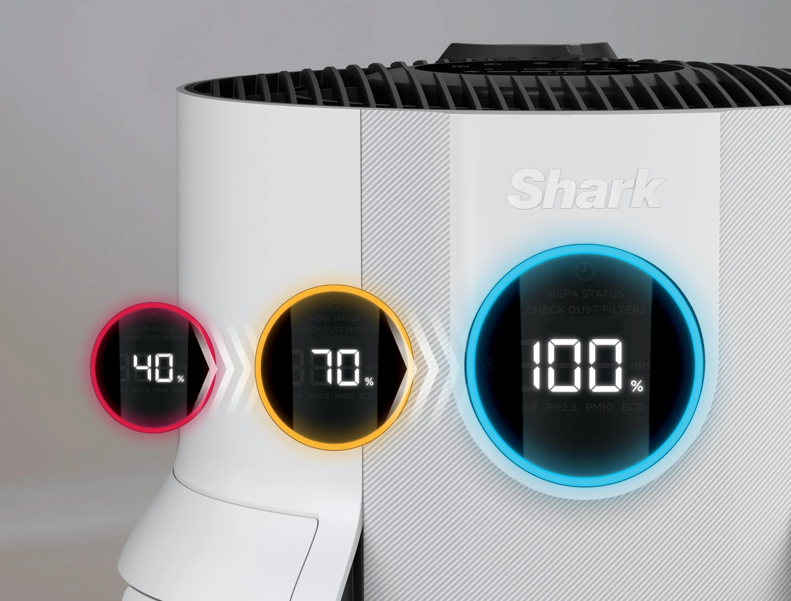 Four filter layers capture and trap 99.97% of allergens and irritants, including micro, small and large particles to effectively remove dust, pollen, pet dander, allergens and micropollutants†. Shark’s NeverChange5 filter is comprised of a NanoSeal HEPA layer, Activated Carbon layer, a Pet Particle Barrier, and an easy-to-clean DebrisDefence pre-filter which protects the HEPA layer from dust, hair and lint.